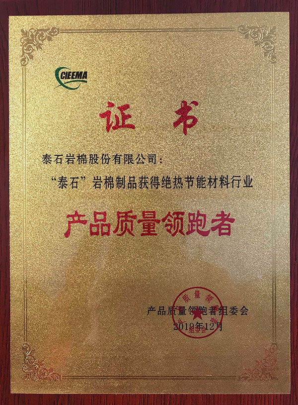 在2019年度“产品质量领跑者”评选活动中,泰石岩棉股份有限公司凭借过硬的产品质量、良好的市场口碑,再次荣获中国绝热节能材料行业“产品质量领跑者”荣誉称号。
