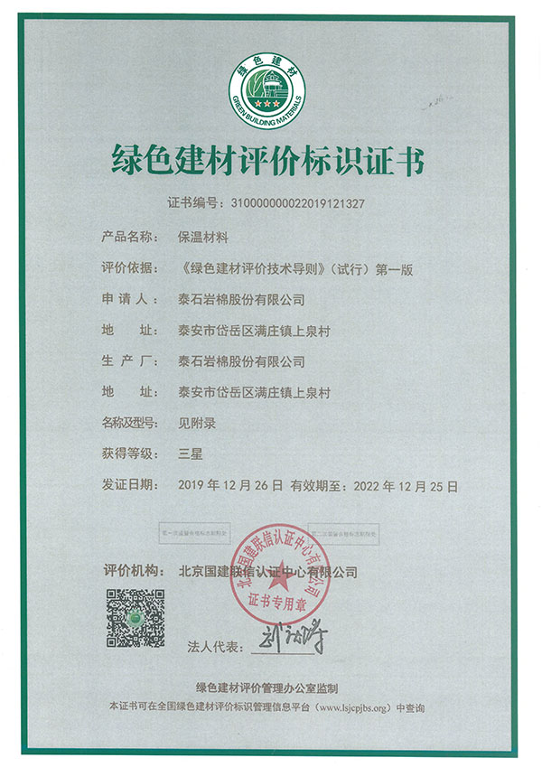 2019年11月24日,由北京国建联信认证中心有限公司现场评审,我公司顺利通过"三星级绿色建材"评价标识复审,于12月26日颁发证书,标志着公司在节能减排、绿色环保、安全生产、资源综合利用以及三体系运行等方面走在了行业的前列。
