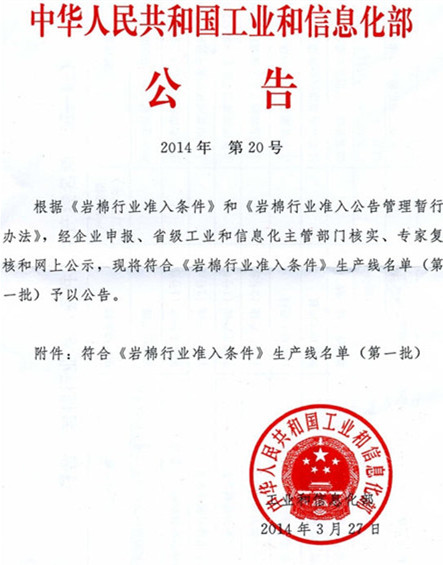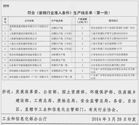 《岩棉行业准入条件》生产线名单(第一批)