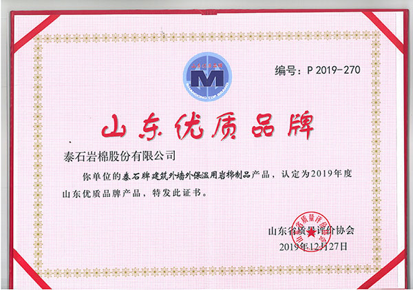 “泰石”牌岩棉被认定为山东优质品牌产品