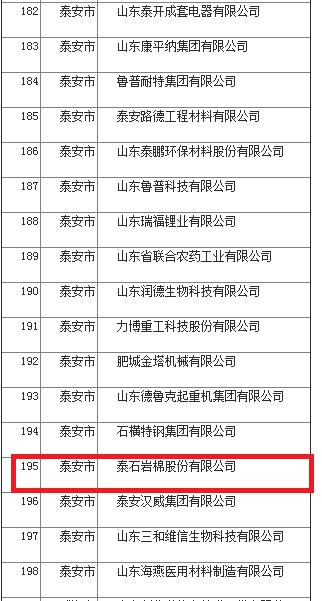 "泰石岩棉"入选 山东省制造业高端品牌培育企业名单