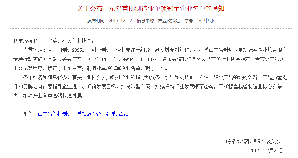 近日,山东省正式公布了首批“制造业单项冠军企业名单”,公司主营岩棉制品凭借卓越的品质、杰出的创新能力和国内遥遥领先的市场份额强势上榜。