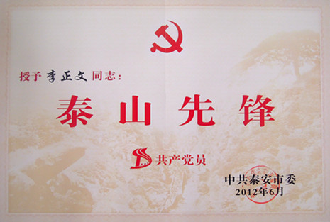 在建党91周年之际,我公司党总支委员,技术部经理李正文同志被中共泰安市委授予“泰山先锋共产党员”荣誉称号。